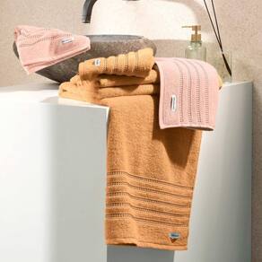 Da linha de Toalhas Premium Altenburg, o modelo Sense está disponível nos tamanhos rosto, banho e banhão com 5 opções de cores: bege, azul, cinza, rosa e branco.