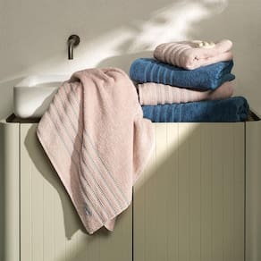 Da linha de Toalhas Premium Altenburg, o modelo Sense está disponível nos tamanhos rosto, banho e banhão com 5 opções de cores: bege, azul, cinza, rosa e branco.