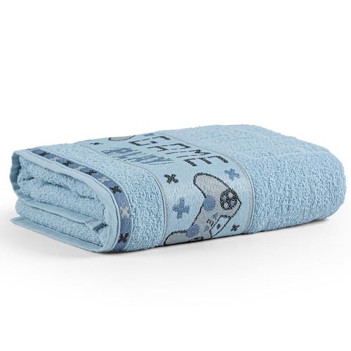 Toalha de Banho Avulsa Minimi Infantil 100% Algodão - 1,15m x 75cm - Game - Azul - Única