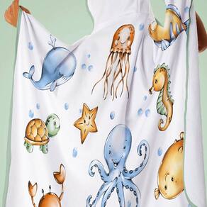 Conteúdo e Medidas: Toalha Capuz Estampado com Viés - Baby - 01 Peça. Tamanho(0,70cm x 0,90cm)