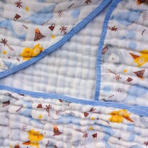Produzida com 3 camadas de tecido fralda de algodão, é super absorvente, extra macia e respirável, proporcionando um toque suave na pele delicada do bebê.
