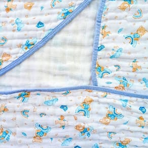 Produzida com 3 camadas de tecido fralda de algodão, é super absorvente, extra macia e respirável, proporcionando um toque suave na pele delicada do bebê.