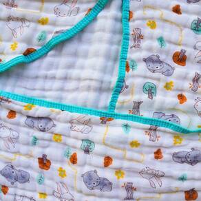 Produzida com 3 camadas de tecido fralda de algodão, é super absorvente, extra macia e respirável, proporcionando um toque suave na pele delicada do bebê.