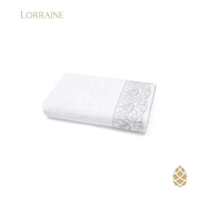 Toalha felpuda com aplicação de Renda Bordada. A delicadeza da renda aplicada na toalha confere ao produto um visual requintado.