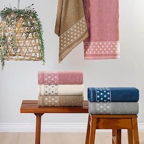 O design com efeito decorativo de bolinhas adiciona um toque de elegância e sofisticação, tornando a toalha não apenas funcional, mas também um belo complemento para a decoração do seu banheiro. A alta qualidade do algodão garante durabilidade, mantendo a suavidade e a capacidade de absorção mesmo após várias lavagens.
