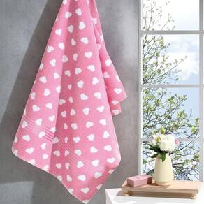 Toalha de Banho garante maciez e conforto em seu uso. Possui um lindo detalhe de viscose na barra que traz ainda mais elegância para sua decoração. Com estampa de coração por toda sua extensão.