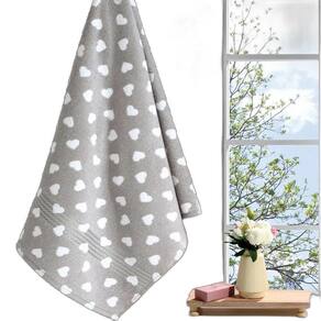 Toalha de Banho garante maciez e conforto em seu uso. Possui um lindo detalhe de viscose na barra que traz ainda mais elegância para sua decoração. Com estampa de coração por toda sua extensão.Br /