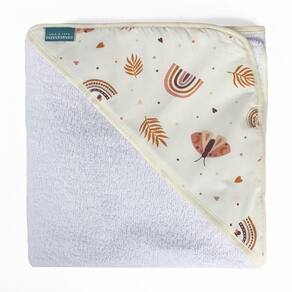 Toalha de Banho Felpa Bebê com Capuz Extra Macia Moderninhos COR: Hippie Chic Confeccionada em toalha felpa extra macia puro algodão, a toalha para Bebê Coleção Moderninhos Baby &Kids concede ao pequeno cuidado e muito amor na hora do banho. Resistente e com alto poder de absorção, a peça protege seus filhos das correntes de ar no pós-banho, aquecendo e os deixando acolhidos. O artigo possui o delicado acabamento com tecido estampado em seu capuz em diversos temas e viés nas bordas, levando sofisticação e elegância para o enxoval de suas crianças.
