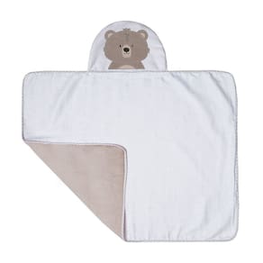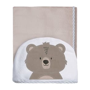A Toalha de banho felpuda Papi Friends forrada com capuz bordado de Urso Ted possui forro de fralda e medida 90cm x 70cm.\nÉ forrada em tecido fralda 100% Algodão, ideal para a pele da criança, além de ser macia e absorvente.\nSeu tecido é ideal para hora de secar e acolher o bebê na saída do banho com maciez e extra absorção.\nSeu capuz também é forrado em tecido fralda.\n \nCaracterísticas:\n \n- Toalha forrada: com tecido fralda, mais macio e absorvente.\n- Capuz bordado e centralizado.\n- Tecido 100% Algodão.\n- Medida: 90cm x 70cm.\n- Contém 1 unidade na embalagem.\n- As cores podem variar entre as imagens e o produto\n- Imagens meramente ilustrativas.