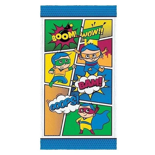 A toalha felpuda da coleção Super Poderes ilustra a temática divertida dos super-heróis, com elementos que remetem as histórias em quadrinhos como onomatopeias coloridas e fundos de diferentes padronagens. Ela possui o jeito Lepper, com um tecido que conta com a exclusiva qualidade da felpa que não desfia, possui ótima absorção e fica mais macio a cada lavagem. A hora do banho ou saída da piscina dos pequenos pode ser mais alegre, mais lúdica, mais Lepper
