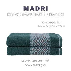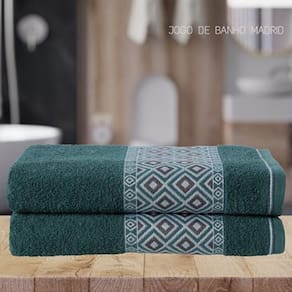Com medidas aproximadas de 1,50m x 73cm, as toalhas de banho do Kit 02 Banhos Avulsos Madri Verde Escuro oferecem o tamanho ideal para envolver o corpo após o banho, proporcionando uma experiência de puro relaxamento.