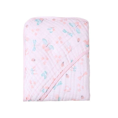 Toalha De Banho para Bebê Fralda Soft Especial Capuz Papi Borboletas Rosa