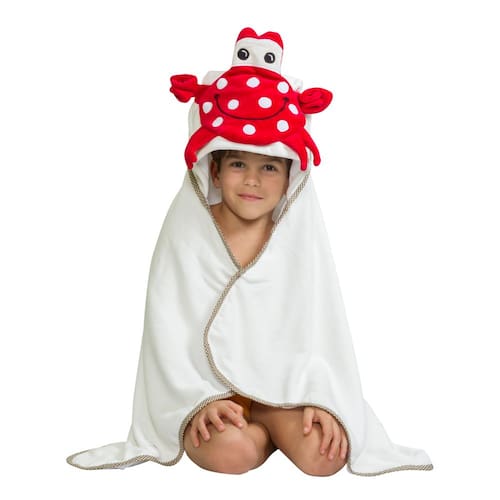 Agora sair do banho, da piscina, da praia também vai ser superdivertido com essa toalha com capuz de caranguejo! Tem coisa mais fofa? A toalha é toda forrada com material atoalhado super macio para não machucar a pele dos pequenos. Fácil de lavar e não cria bolinhas. Dimensões: Altura: 78cm capuz não incluso Comprimento: 63 cm