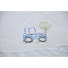 Hora do Banho, momento delicioso e refrescante. A Toalha de banho deve ser macia de preferência forrada com fralda, assim é a Toalha da Minha Casa Baby, em malha forrada com fralda bem macia e de tamanho gigante, envolvendo o corpo do bebê todinho na retirada do banho,sem que tenha mudanças bruscas de temperatura. Bordada a maquina dando um charme na peça - tratorzinho azul Ean: 7898506749287