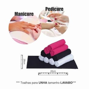 Características do Produto:Toalhas Lavabo para Manicure (Unha)Gramatura 270 g/mPeso Aproximado da Toalha de Lavabo Manicure 38 A 42 GramasTamanho da Toalha Lavabo Manicure 28x45 cmFio 16/1 SingeloMaterial 100% Algodão (Exceto Efeito Decorativo)