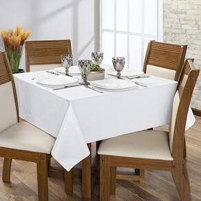 Essa toalha de mesa possui as medidas de 1,40 m de largura x 1,40 m de comprimento, sendo ideal para mesas de 4 cadeiras.