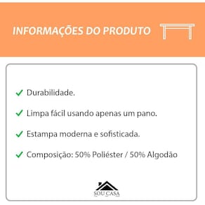 O modelo Esmeralda 01 possui um tamanho de 78x78cm, perfeito para mesas de diversos tamanhos. Seu material de alta qualidade garante durabilidade e resistência, além de proporcionar um toque suave e confortável.