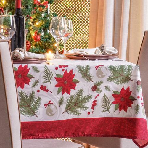 Toalha de Mesa Facile Natalina 10 Lugares 140x300cm 100% Poliéster Flor de Natal -