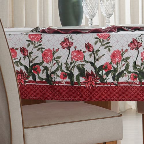 Toalha de Mesa Facile Repelente à Água 140x250cm Flowers - Acabamento Repelente à Água, Fácil de Limpar