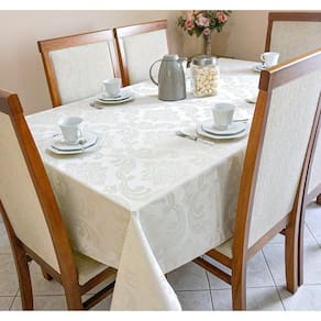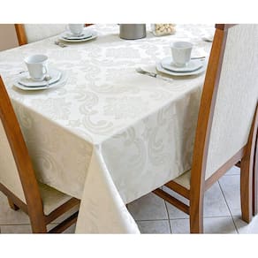 Toalha de Mesa Jacquard 04 Lug Cozinha quadrada Cor: Marfim Toalha de Mesa de Jacquard com lindo desenho floral, peça moderna para eventos especiais em seu lar.
