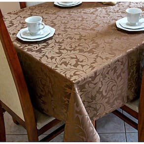 Toalha de Mesa Jacquard 06 Lug Cozinha Retangular Tecido Cor: Marrom Toalha de Mesa de Jacquard com lindo desenho floral, peça moderna para eventos especiais em seu lar.