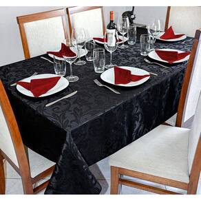 Toalha de Mesa Jacquard 06 Lug Cozinha Retangular Tecido Cor: Preto Toalha de Mesa de Jacquard com lindo desenho floral, peça moderna para eventos especiais em seu lar.