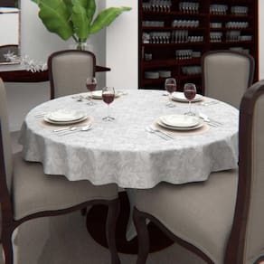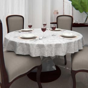 Toalha de Mesa Branca Redonda Jacquard 1,40 de diâmetro com Arabesco coloca seu dia a dia com mais glamour e elegância.