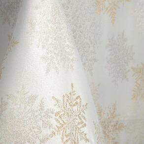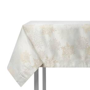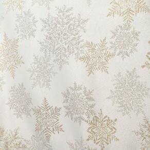 A Toalha de Mesa Flake é produzida 100% em poliéster, com costura larga na barra, e estampa bordada com linhas brilhosas de flocos de neve dourados e prateados. É uma opção elegante para usar nas festas de fim de ano e deixar a mesa-posta mais bonita e bem decorada.
