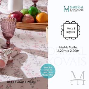 Contém: 01 peça 01 toalha de mesa quadrada 2,20x2,20m Estampa/cor: quatro estações/rosa