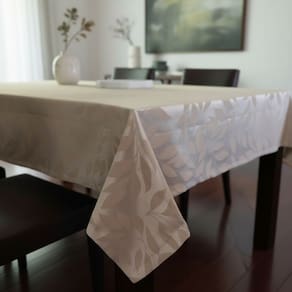 Tamanho ideal: cobre mesas de até 8 lugares. Material de alta qualidade: durável e sofisticado. Design versátil: padrão Jacquard em tom bege neutro. Fácil manutenção: praticidade sem abrir mão do estilo. Garanta já a sua e leve um toque de elegância e funcionalidade para suas refeições!
