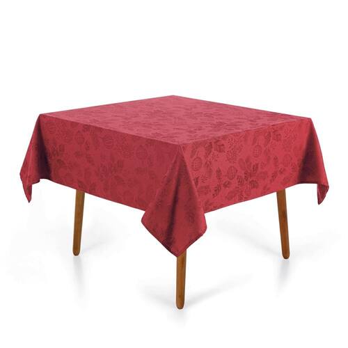 A peça é produzida em tecido jacquard de algodão e poliéster, que une toque agradável, resistência às lavagens e praticidade para o dia a dia. O tamanho 1,40m x 1,40m é indicado para mesas de até 4 lugares, garantindo a queda ideal nas laterais para uma mesa bem posta. Combine a Toalha de Mesa Jacquard Natal Azevinho, da com Karsten com guardanapos, velas e arranjos naturais para compor um cenário festivo, super aconchegante e sofisticado!