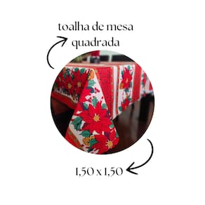 Toalha de Mesa Quadrada150x150 Natal Flores Tecido Oxford 100% Poliester