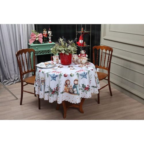 Toalha De Mesa Redonda Natalina Para 4 Lugares Decorativa