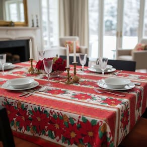 Toalha de Mesa Retangular150x220 Natal Flores Tecido Oxford 100% Poliester