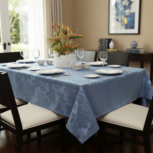 Toalha de Mesa Retangular 160 x 320 Jacquard Azul 58% Algodão 42% Poliester
