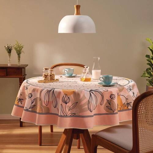 Toalha De Mesa Super Pratica Redonda 4 Lugares Canteiro 155M - Coral