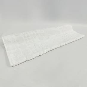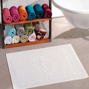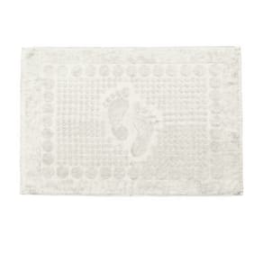 Medindo 50x70 cm, esta toalha de piso é feita de 100% algodão, oferecendo uma superfície macia e altamente absorvente para seus pés.
