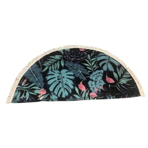Toalha de Praia Redonda com Franjas Anti Areia Bene Casa Folhas Azul -