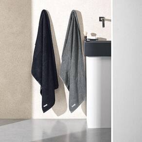 Da linha de Toalhas Premium Altenburg, o modelo Mesclato está disponível nos tamanhos rosto, banho e banhão, com 5 opções de cores: branco, azul, preto, vermelho e cinza.