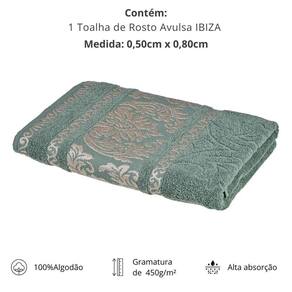 A toalha de rosto Ibiza é a união perfeita entre beleza e funcionalidade. Ideal para compor o enxoval com bom gosto, ela mede 50x80cm e tem gramatura de 450g/m, garantindo boa absorção e um toque suave que respeita a pele.