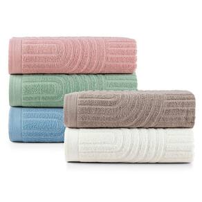 - Fio penteado: mais maciez, resistência e conforto ao toque. - Relevo suave: textura que valoriza a peça com leveza e elegância. - Cores disponíveis: Off White, Nuvem Rosa, Oceano, Pistache e Amêndoa.