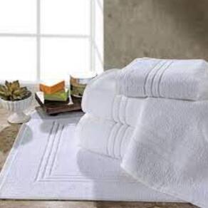 Confeccionada em 100% algodão, com exceção da barra decorativa, ela possui uma gramatura de 340g/m², garantindo uma alta capacidade de absorção.