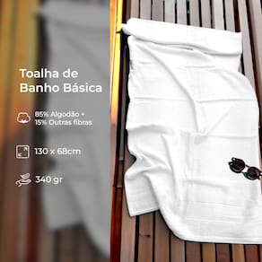 Confeccionada em 100% algodão, com exceção da barra decorativa, ela possui uma gramatura de 340g/m², garantindo uma alta capacidade de absorção.