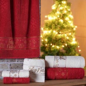 Encante o seu Natal com essa Toalha de Rosto, ideal para ornar e decorar o seu Lavabo Social na Festividade de Natal. Possui um lindo bordado Natalino e detalhe escrivo "Feliz Natal", além de um tamanho perfeito, é super macia e feita de 100% algodão.
