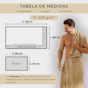 A hora do banho ;é o momento em que relaxamos e revigoramos nossas energias. Então, aproveite ao máximo esse momento e tenha em mãos a nossa toalha Intense com um toque macio. Esta toalha é importada e produzida com fio ultra macio 24 penteado e felpa super volumosa. A toalha intense é 100% algodão, e é o casamento perfeito para entregar o melhor na hora de se secar. Sua gramatura é de 600 gramas por metro quadrado e cada toalha pesa aproximadamente ;240 gramas. O tamanho desta toalha é 50cm de largura por 80m de comprimento. Possui o corpo inteiro da toalha com em 100% Algodão, dando maior poder de absorção e maciez.