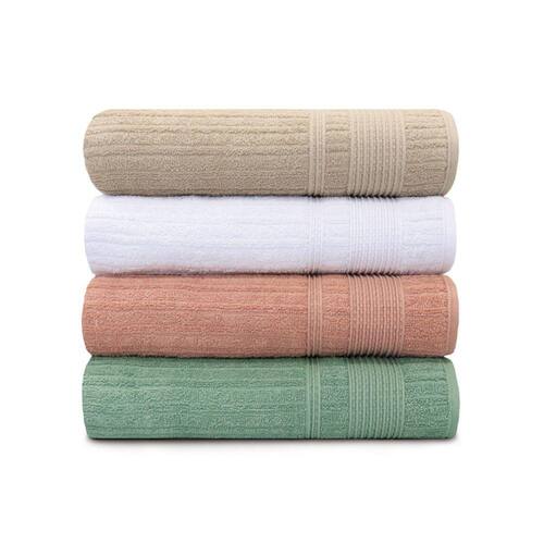 Essa toalha é de encher os olhos, pelas cores suaves e clássicas, por sua beleza com o corpo canelado e barra com efeito 3D especial e principalmente, pelo requinte da visão ao toque, do conforto a satisfação de um banho repleto de boas sensações.