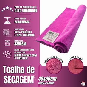 Toalha de secagem premium com alta capacidade de absorção. Gramatura 435gsm, ideal para remoção de água com segurança, e também na remoção de resíduos no polimento e no uso da solução de ipa evitando marcas na pintura. Possui costura reforçada nas bordas para maior durabilidade. Toalha de secagem pink Premium 40x60cm - 435gsm Composição: 80% poliéster e 20% poliamida. Utilize detergentes de ph neutro, ou Produtos específicos para a lavagem; - não utilize alvejantes, amaciante e ferro de Passar; - evite torcer a microfibra para não Ocasionar o rompimento dos filamentos, Diminuindo sua vida útil; - evite expor ao sol para não ressecar as Fibras do tecido. A nr estética oferece uma de 7 dias em seus produtos Marca: Não Informado