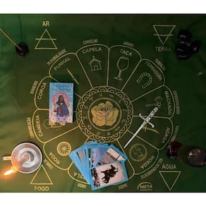 É composta por tecido, linda estampa, o que oferece ainda mais requinte ao teu jogo. Boa Qualidade de impressão, podendo ser utilizada em altares, desenvolvida especialmente para jogos de cartas intuitivas.