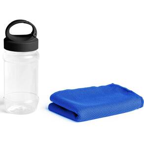 -não utilizar secador Especificações: Material /composição da toalha: Poliamida e poliéster. Material /composição da garrafa: Plástico Dimensões toalha: 30 x 80 cm Dimensões Garrafa: 6,5 x 12,5 cm Marca: Não Informado Ean: 7898632413021