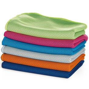 A Toalha Esportiva Refrescante TopGet quando molhada fica mais gelada e permanece fria durante horas dependendo da maneira que for utilizada. Se a toalha aquecer, basta sacudir, reativando o frescor.